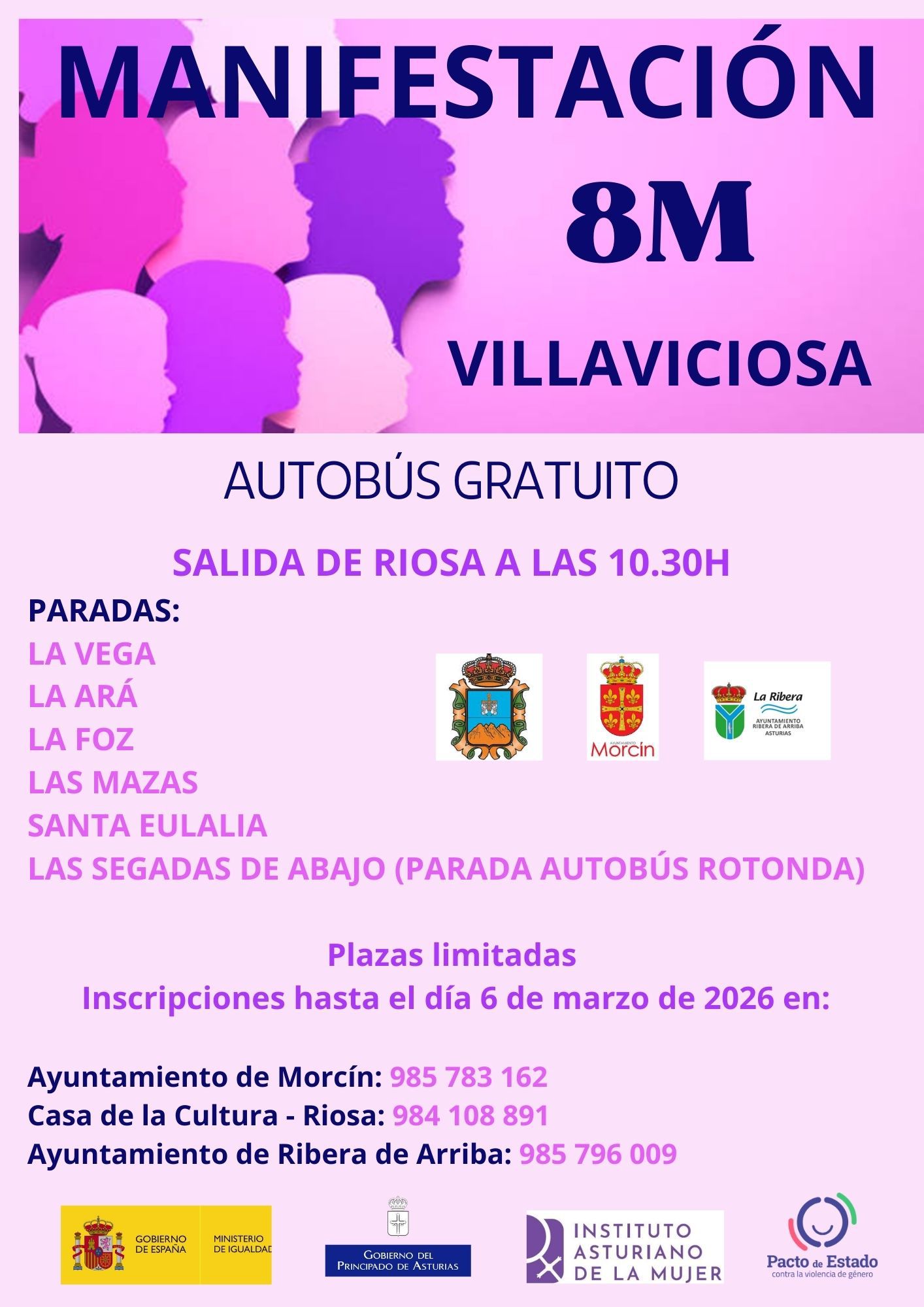 Autobús gratuito desde Riosa, Morcín y Ribera de Arriba para el 8M en Villaviciosa