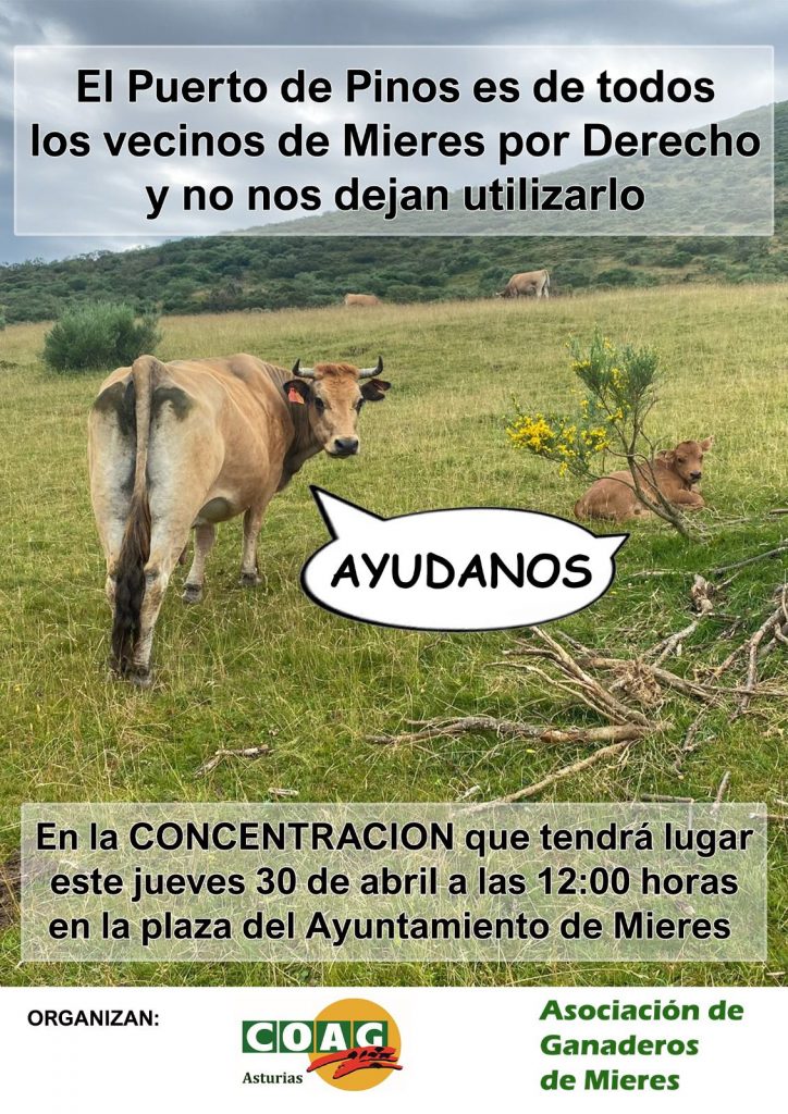 La organización agraria COAG Asturias y la Asociación de Ganaderos de Mieres han convocado una concentración este jueves 30 de abril a las 12:00 horas en la plaza del Ayuntamiento de Mieres para reclamar el uso del Puerto de Pinos.