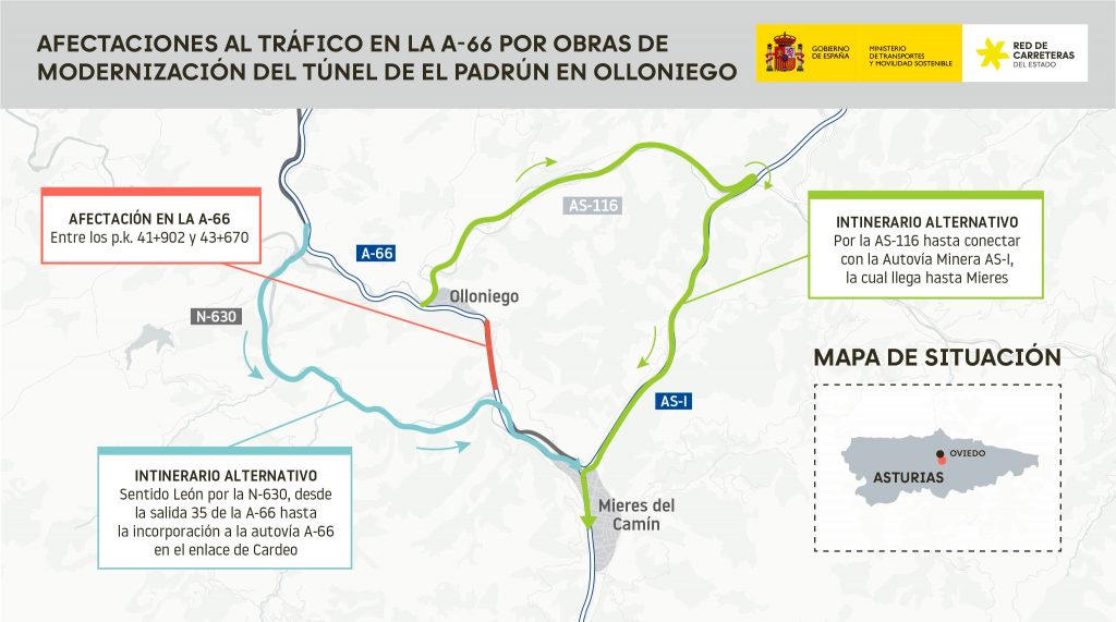 El Ministerio de Transportes y Movilidad Sostenible avanza con las obras de modernización y mejora de la seguridad en los túneles de Ángel Uriel y El Padrún, en la autovía A-66 a su paso por Asturias. La actuación, financiada a través del Plan de Recuperación, Transformación y Resiliencia, cuenta con un presupuesto de 7,26 millones de euros.