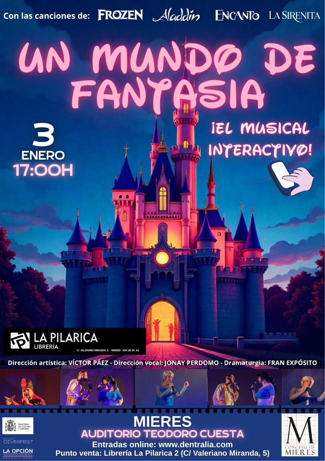 El Auditorio Teodoro Cuesta de Mieres acogerá el sábado 3 de enero, a las 17:00 horas, el espectáculo “Un mundo de fantasía”, un musical interactivo que hará partícipe al público del desarrollo de la función y que se ha convertido en uno de los montajes familiares más destacados de la actual gira nacional.