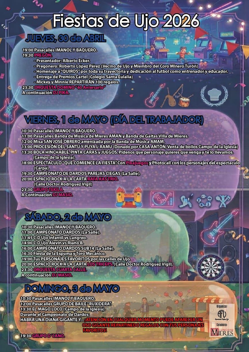 La localidad mierense de Ujo/Uxo celebrará del 30 de abril al 3 de mayo sus fiestas de San José Obrero 2026, con un programa completo que combina música, tradición y actividades para todos los públicos.