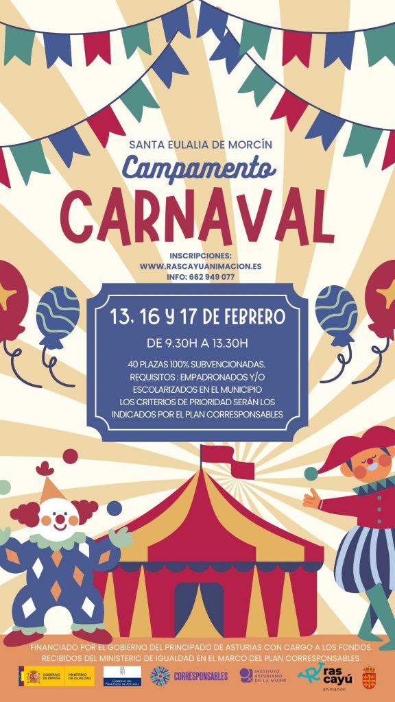 Esta actividad está financiada por el Gobierno del Principado de Asturias con cargo a los fondos recibidos del Ministerio de Igualdad en el marco del Plan Corresponsables, y se enmarca dentro de las políticas municipales de apoyo a las familias y de promoción de la igualdad y la conciliación.