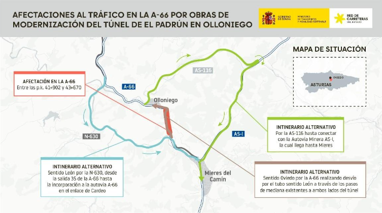 Estas nuevas afecciones forman parte de la fase final del plan de modernización, que permitirá actualizar los sistemas de seguridad y ventilación de los túneles de la A-66 conforme a la normativa europea vigente.