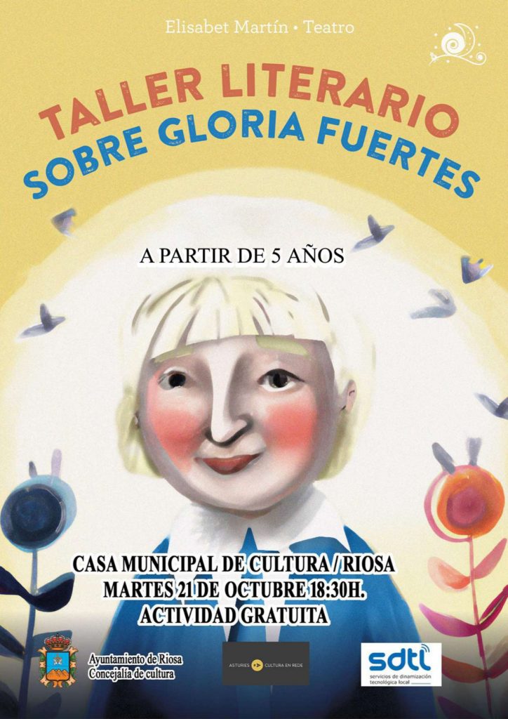La Casa Municipal de Cultura de Riosa acogerá este martes, 21 de octubre, a las 18:30 horas, el Taller Literario sobre Gloria Fuertes, una propuesta de Elisabet Martín Teatro dirigida a niñas y niños a partir de 5 años.